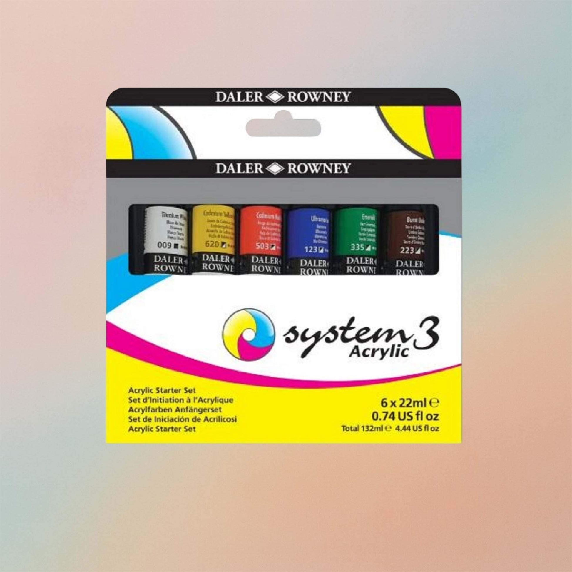 مجموعة ألوان أكريليك من دالر روني سيستم 3، 6 قطع × 22 مل