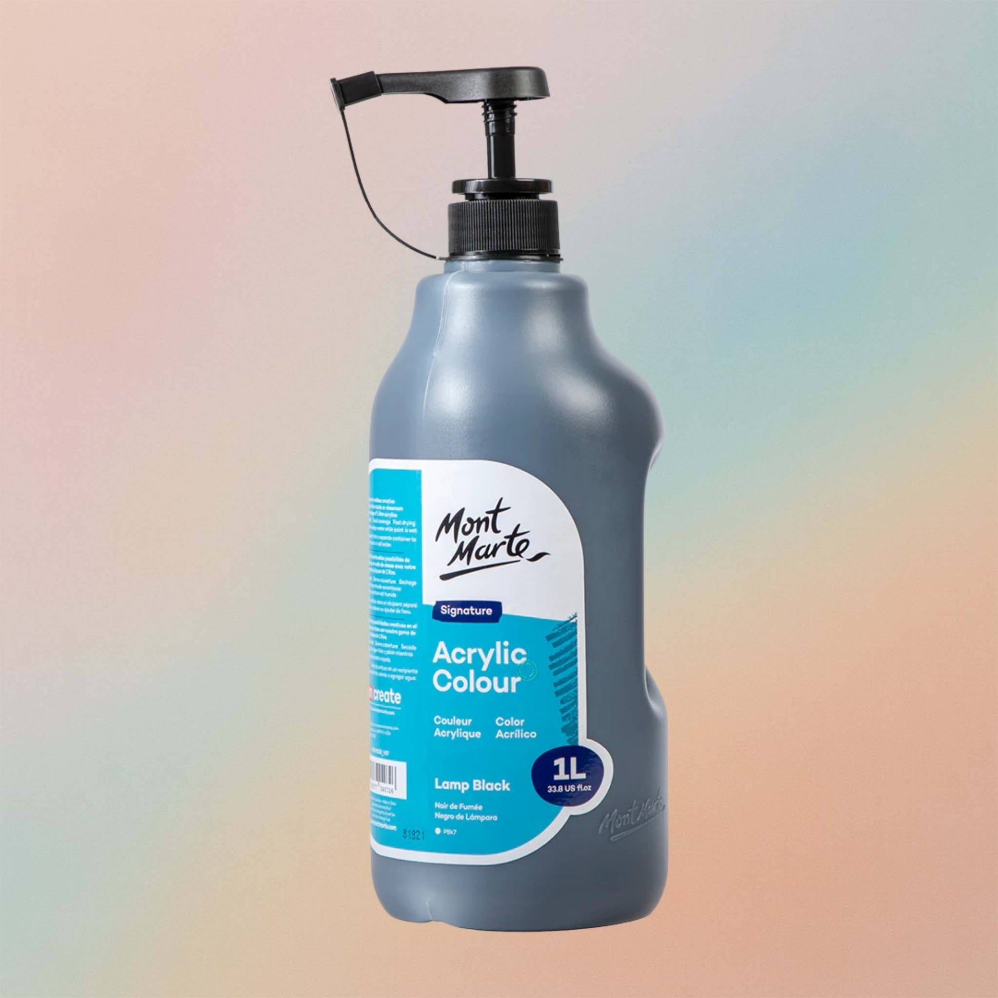 زجاجة ألوان أكريليك مميزة من مونت مارت، سعة 1 لتر (33.8 أونصة سائلة أمريكية) - أسود لامع