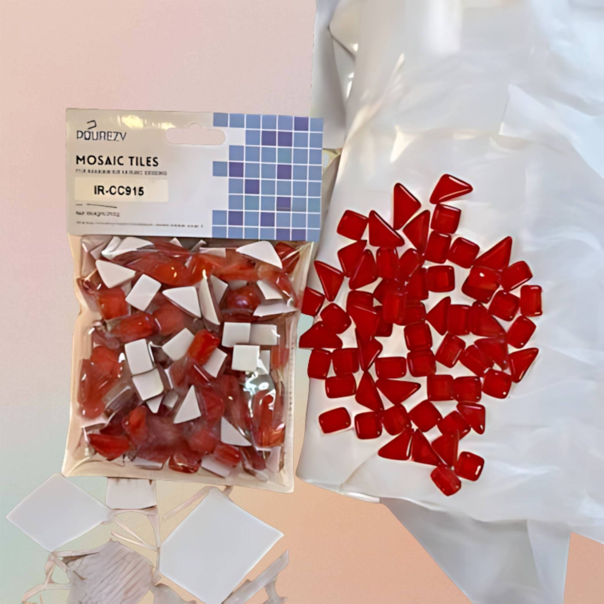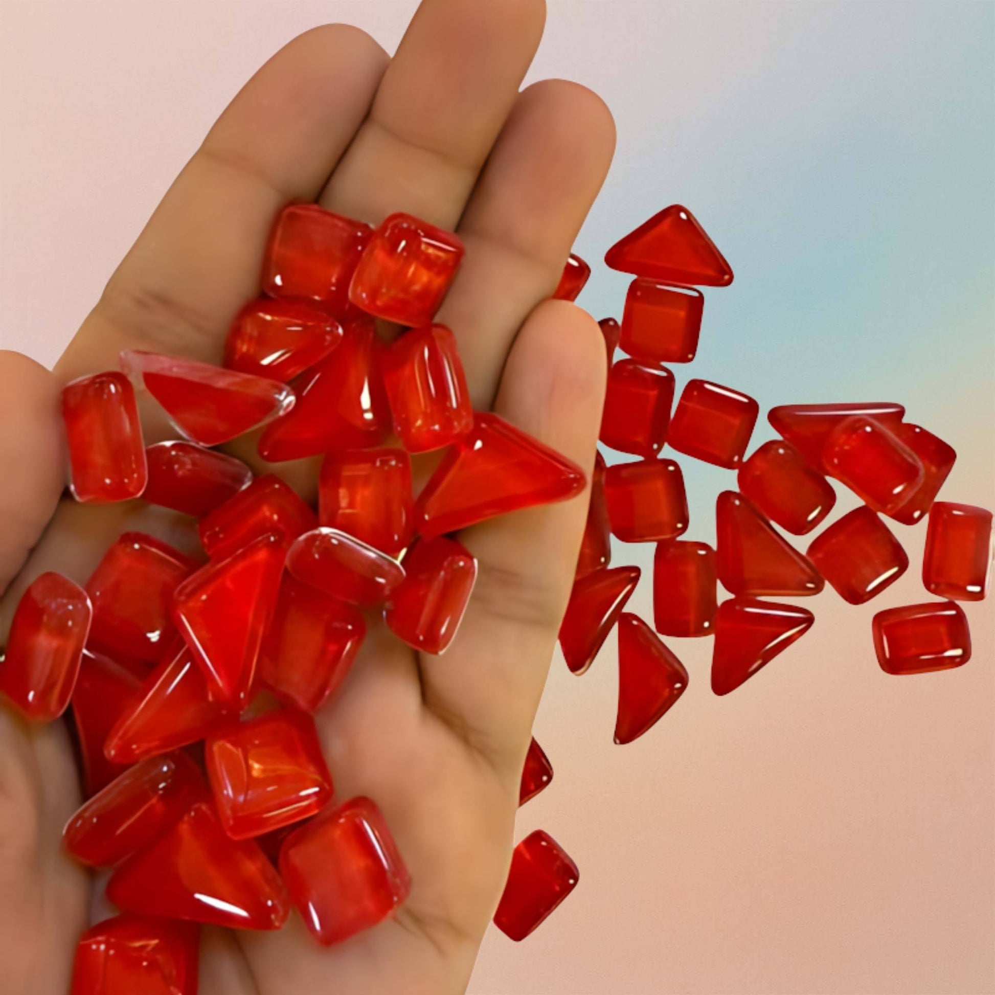 بلاط فسيفساء لمشاريع "اصنعها بنفسك" من الزجاج الكريستالي متعدد الأحجام، مثلث، مستطيل، مربع - أحمر