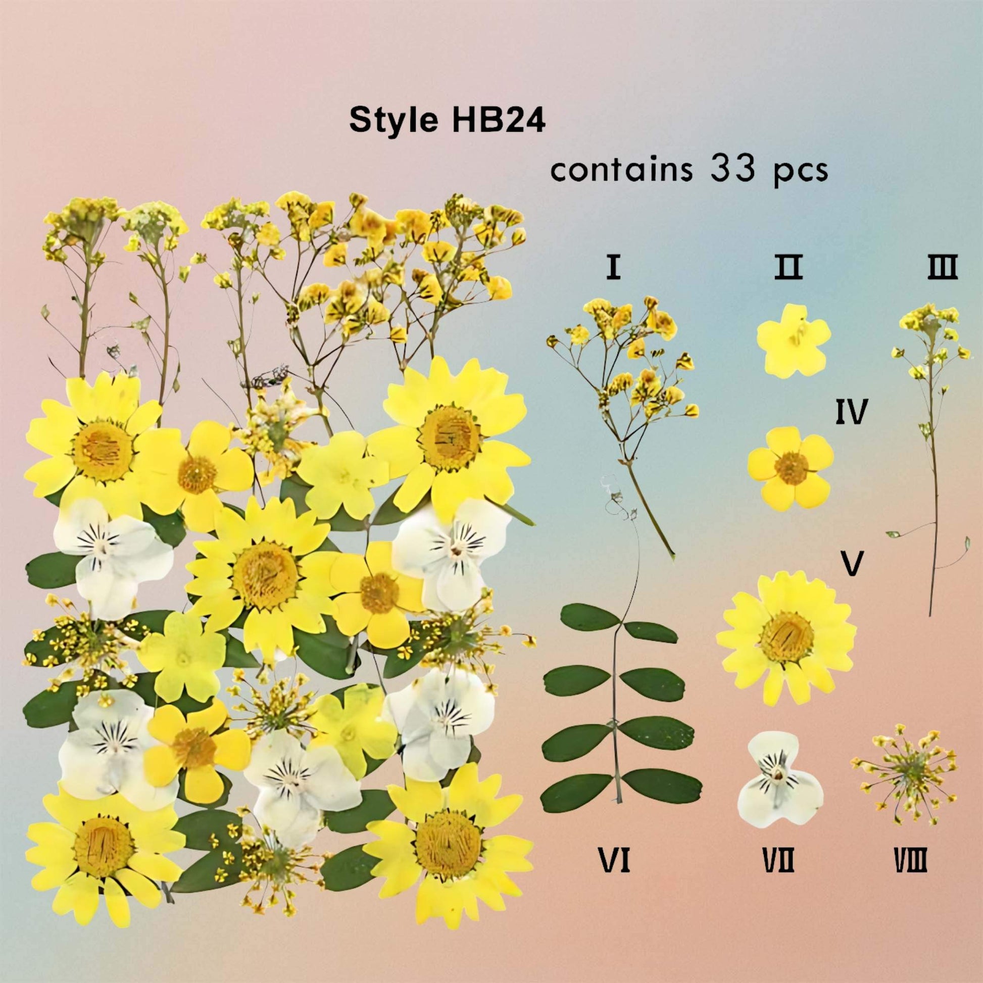 - الكمية : 1 ورقة من الزهور المضغوطة المختلطة