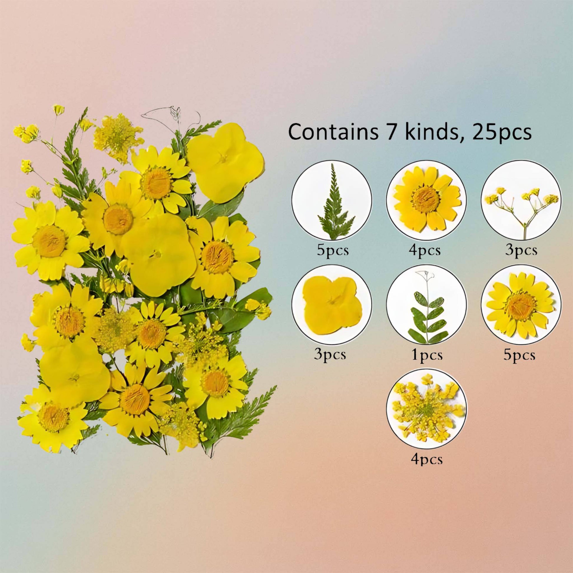 الزهور المضغوطة هي زهور مجففة حقيقية ومختومة بإحكام.
