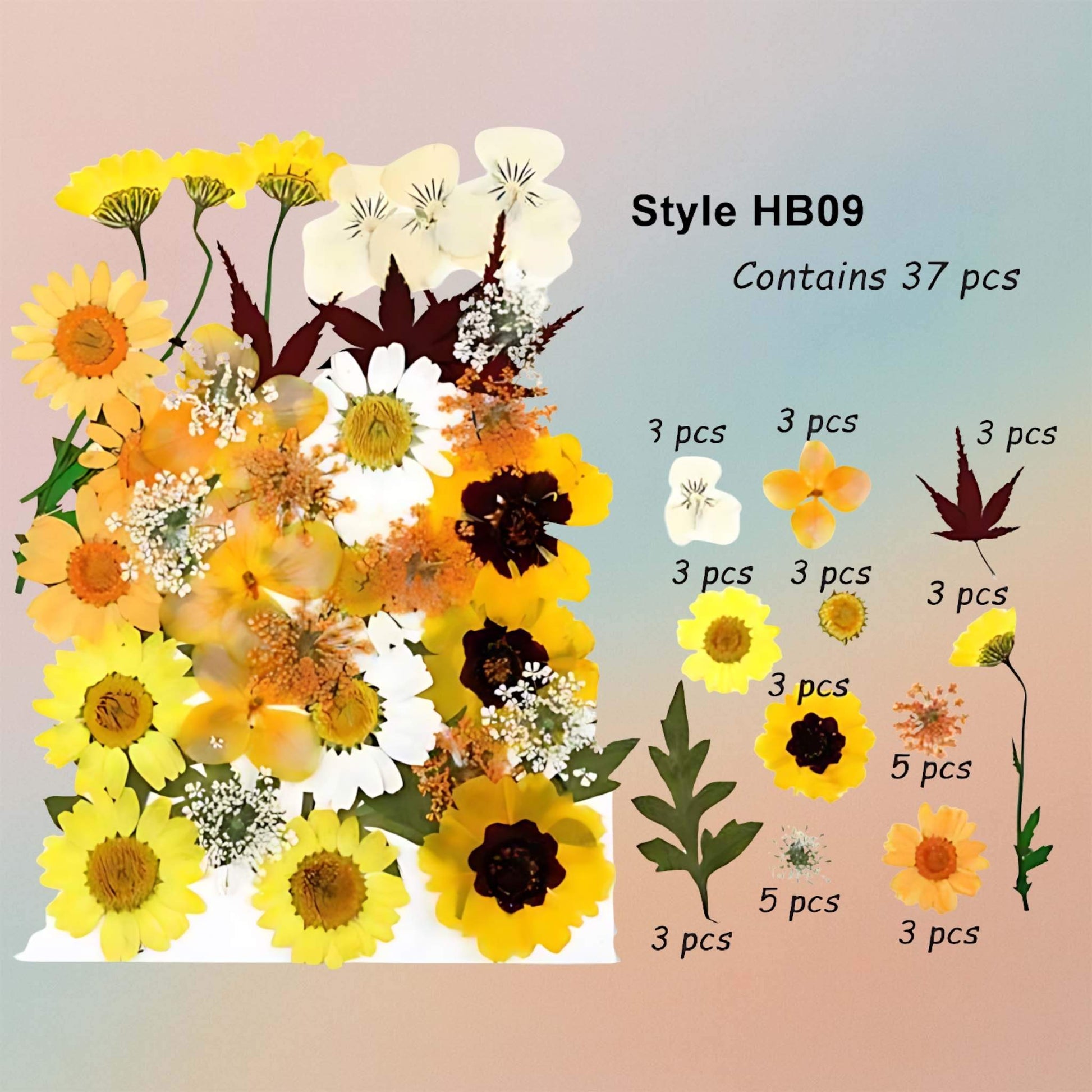 - الزهور المضغوطة هي زهور مجففة حقيقية ومختومة بإحكام.
