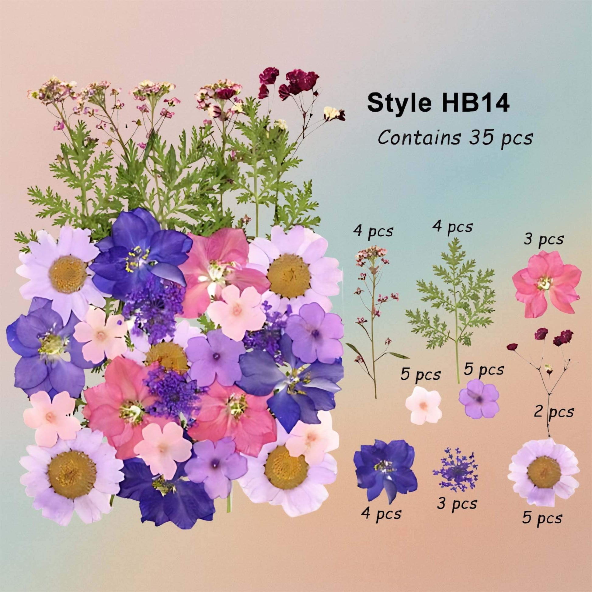 - الزهور المضغوطة هي زهور مجففة حقيقية ومختومة بإحكام.