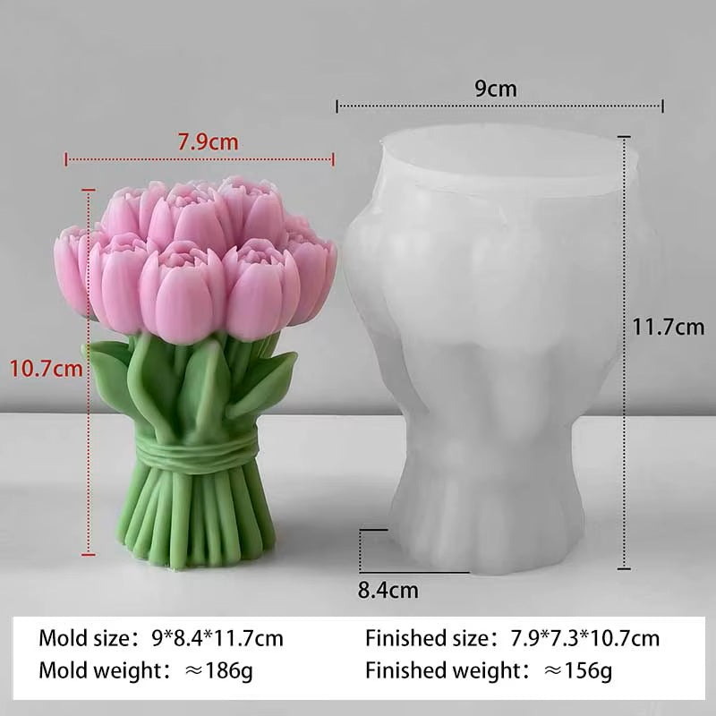3D Tulip Bouquet Silicone Mold Candle Scented Mold Jesmonite & Resin Diffuser Stone Chocolate & Soap Candle Style 2