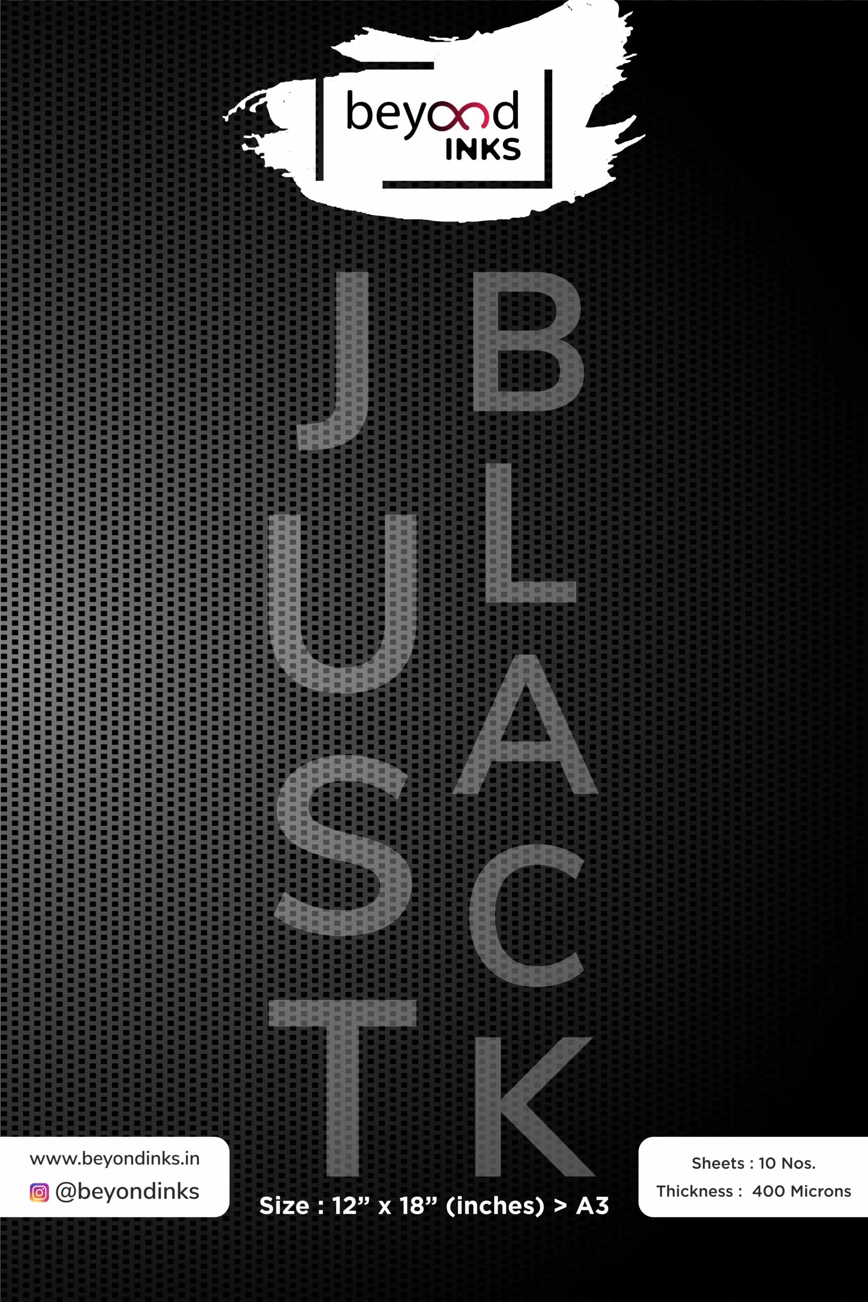 The Beyond Inks "Just Black" synthetic sheets are a completely non-porous, waterproof, and tear-resistant surface designed primarily for alcohol ink artwork. They are known for being stain-free and thick, similar to cardstock, and are available in a 400-micron thickness.