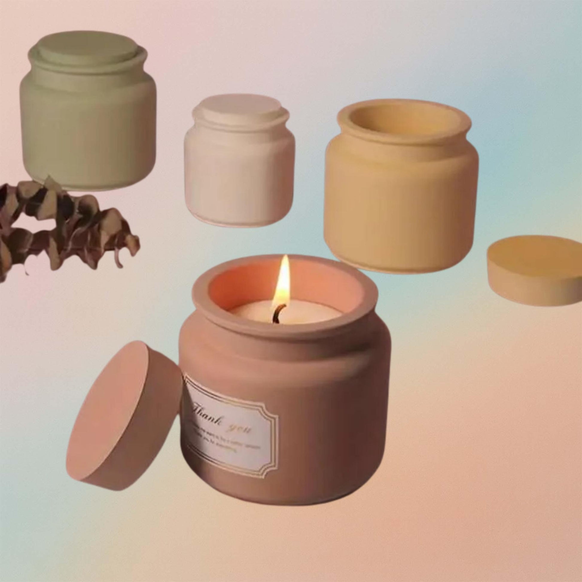 Candle Jar Mould Silicon Concrete Jesmonite Mould Holder With Lid Candle Making Mould