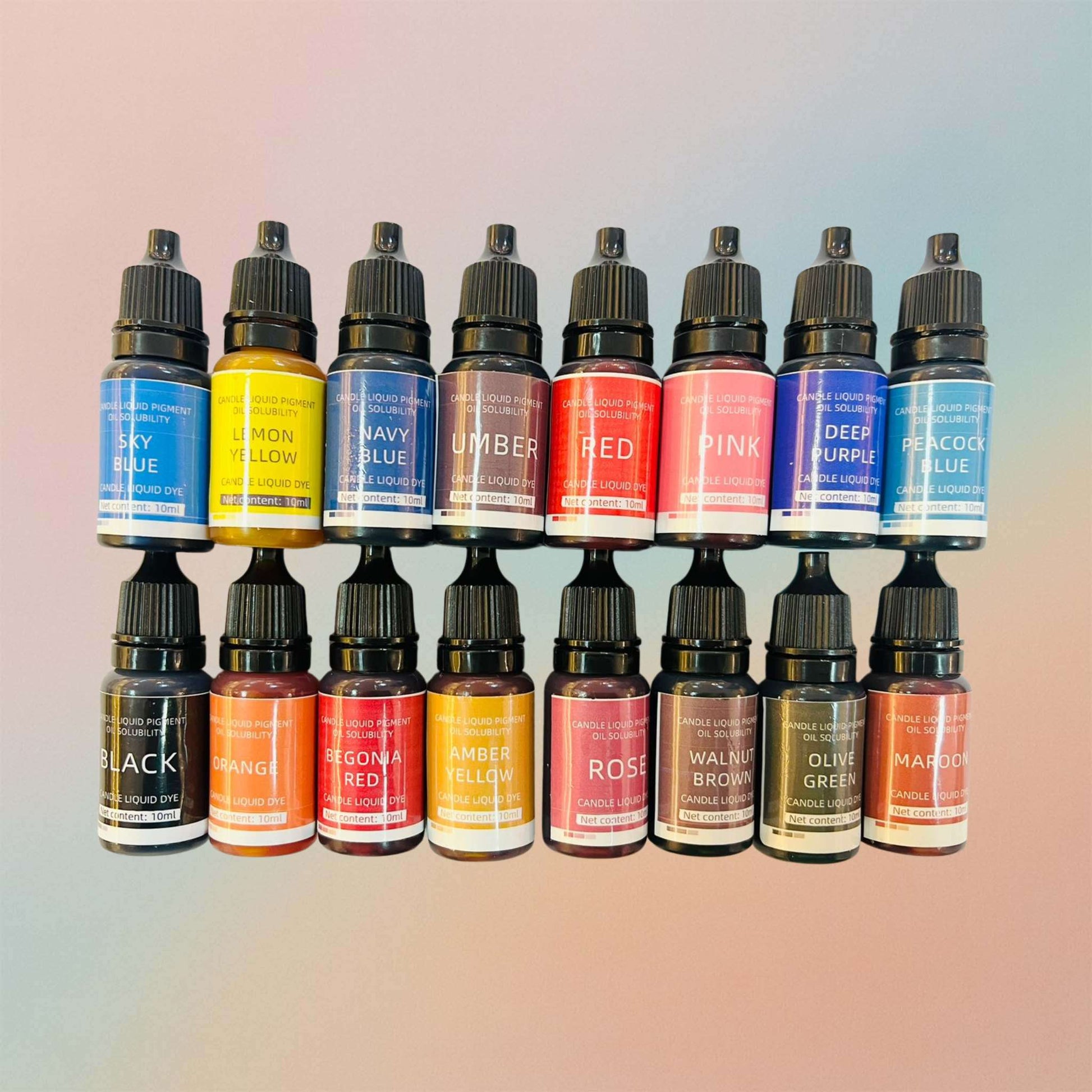 Liquid candle dye is a highly concentrated colorant that can be mixed with soy wax, coconut wax, paraffin wax, gel wax, and beeswax.