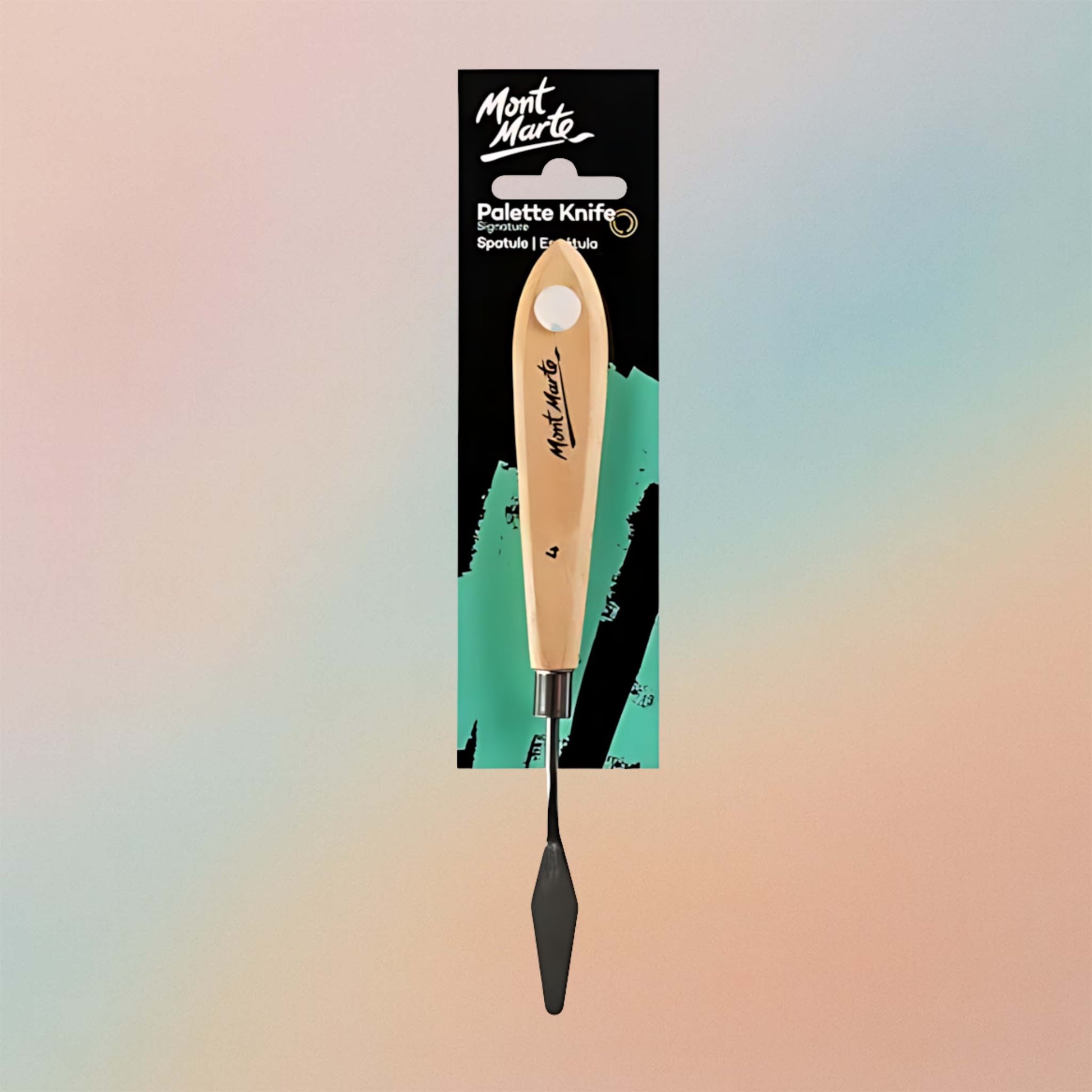 Mont Marte Palette Knives are constructed with flexible steel blades which are perfect for creating a wide range of textures and effects. Small knives are good for smaller works and large knives for large scale works. Palette knives are great for mixing paint, allows paint to be applied in a textured manner and can be used on its side for fine lines.