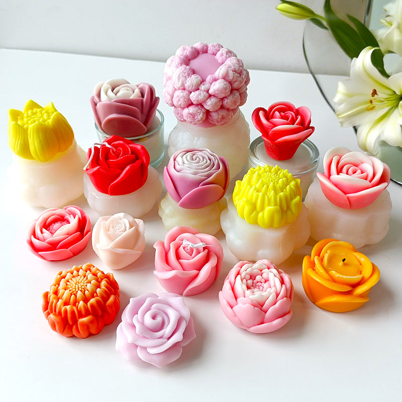Peony Flower Aroma Candle & Jesmonite Silicone Mould 3D Flower Plaster Decoration Home Ornament Mold