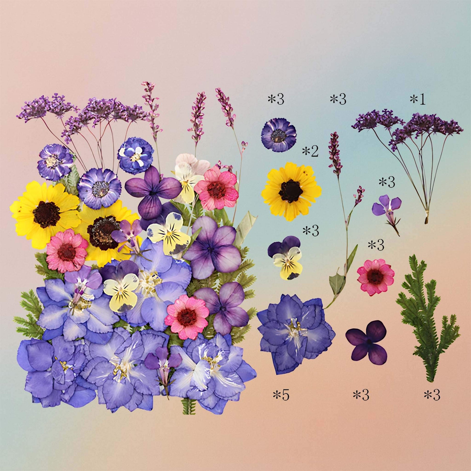 - Quantity: 1 Sheet of Mixed Pressed Flowers